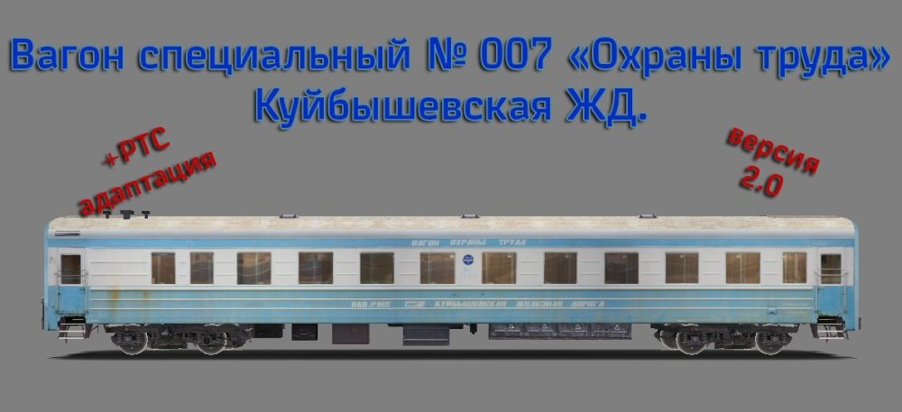 Вагон специальный № 007 «Охраны труда» Куйбышевская ЖД. Версия 2.0 Авторы: * Виктор Михайлов aka awaken, Федюнин Александр aka -–RZD-- - авторы модели * Виктор Михайлов aka awaken, Федюнин Александр aka -–RZD-- - авторы текстур * Виктор Михайлов aka awaken, Алексей Алпатов aka Aleks, Федюнин Александр aka –-RZD-- – авторы технических настроек * Михаил Кузнецов aka Mlazy – автор перекраски * Максим Рязанов aka limburg55( Max - RZD ) – автор фотоматериала [Hidden Content]