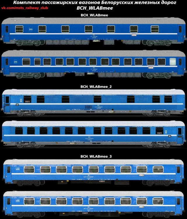 Комплект пассажирских вагонов Белорусских железных дорог BCH_WLABmee АВТОРЫ: Модели: ANDRZEJLANDRZEJ Техническая настройка: ANDRZEJLANDRZEJ Олег Водопьянов (Olegator_OS) Текстуры: ANDRZEJLANDRZEJ Олег Водопьянов (Olegator_OS) Перекраска: Олег Водопьянов (Olegator_OS) Авторская идея: Олег Водопьянов (Olegator_OS) В комплект входит 3 вагона: BCH_WLABmee BCH_WLABmee_2 BCH_WLABmee_3 [Hidden Content]