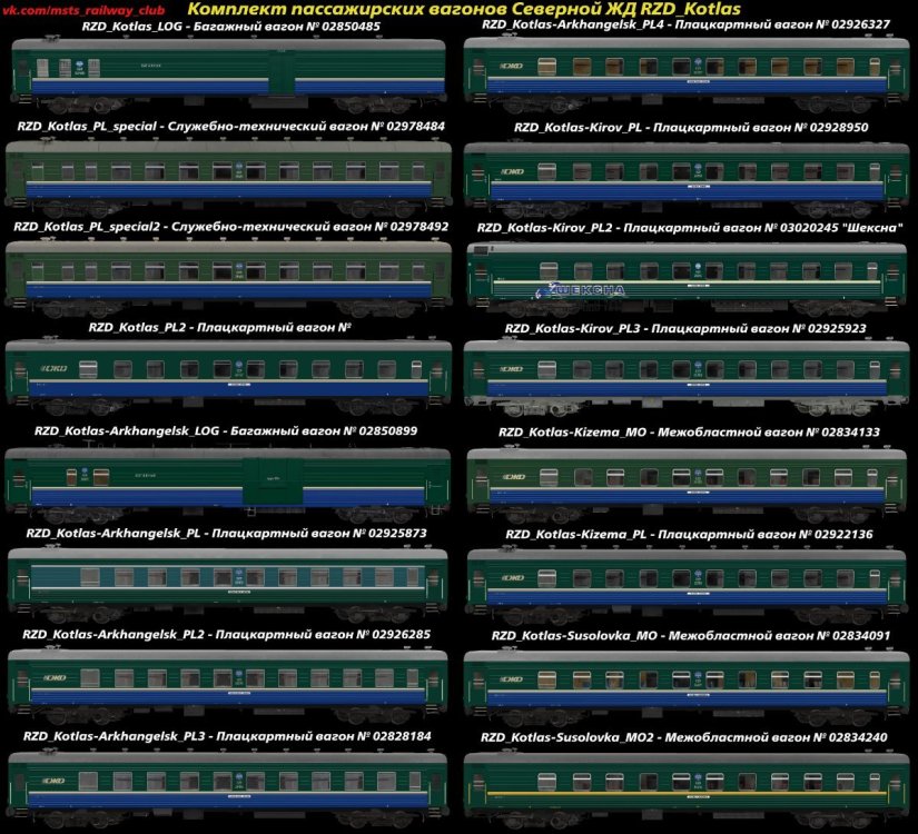 Комплект пассажирских вагонов Северной ЖД, для составов поездов: Котлас-Архангельск Котлас-Москва Котлас-Киров Котлас-Кизема Кизема-Кулой Котлас-Сусоловка Версия 2.0 (часть-1 плацкартные, межобластные, багажные и служебно-технические вагоны) ******************************************************************************************* АВТОРЫ: Модели: Александр Федюнин (--RZD--) Виктор Михайлов (awaken) Техническая настройка: Виктор Михайлов (awaken) Алексей Алпатов (Aleks) Алексей Фёдоров (Im-Ho-Tep) Олег Водопьянов (Olegator_OS) vk.com/olegator_os Текстуры: Александр Федюнин (--RZD--) Олег Водопьянов (Olegator_OS) vk.com/olegator_os Перекраска: Олег Водопьянов (Olegator_OS) vk.com/olegator_os Авторская идея: Олег Водопьянов (Olegator_OS) vk.com/olegator_os ******************************************************************************************* В комплект входит 16 вагонов: RZD_Kotlas_LOG - Багажный вагон № 02850485 RZD_Kotlas_PL_special - Служебно-технический вагон № 02978484 RZD_Kotlas_PL_special2 - Служебно-технический вагон № 02978492 RZD_Kotlas_PL2 - Плацкартный вагон № 02926707 RZD_Kotlas-Arkhangelsk_LOG - Багажный вагон № 02850899 RZD_Kotlas-Arkhangelsk_PL - Плацкартный вагон № 02925873 RZD_Kotlas-Arkhangelsk_PL2 - Плацкартный вагон № 02926285 RZD_Kotlas-Arkhangelsk_PL3 - Плацкартный вагон № 02828184 RZD_Kotlas-Arkhangelsk_PL4 - Плацкартный вагон № 02926327 RZD_Kotlas-Kirov_PL - Плацкартный вагон № 02928950 RZD_Kotlas-Kirov_PL2 - Плацкартный вагон № 03020245 "Шексна" RZD_Kotlas-Kirov_PL3 - Плацкартный вагон № 02925923 RZD_Kotlas-Kizema_MO - Межобластной вагон № 02834133 RZD_Kotlas-Kizema_PL - Плацкартный вагон № 02922136 RZD_Kotlas-Susolovka_MO - Межобластной вагон № 02834091 RZD_Kotlas-Susolovka_MO2 - Межобластной вагон № 02834240 [Hidden Content]