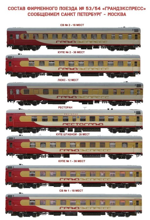 Состав фирменного поезда № 53/54 «Грандэкспресс» сообщением Санкт Петербург - Москва Версия 2.0 Авторы: * Виктор Михайлов aka awaken, Федюнин Александр aka -–RZD-- - авторы модели * Виктор Михайлов aka awaken, Федюнин Александр aka -–RZD-- - авторы текстур * Виктор Михайлов aka awaken, Алексей Алпатов aka Aleks, Федюнин Александр aka –-RZD-- – авторы технических настроек * Кузнецов Михаил aka mlazy – автор перекраски * Рязанов Максим aka limburg55 – автор фотоматериала * Игорь Чернышов aka Fox-kolpino – автор фотоматериала В пакет входят: - вагон люкс производства ТВЗ 12 мест - вагон ресторан - купейный вагон производства ТВЗ 36 мест - СВ вагон производства ТВЗ 18 мест - штабной купейный вагон производства ТВЗ 26 мест - купейный вагон производства ТВЗ №2 36 мест - СВ вагон производства ТВЗ №2 18 мест [Hidden Content]