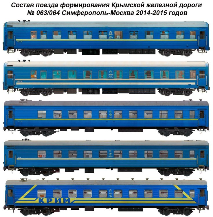 Состав поезда формирования Крымской железной дороги № 063/064 Симферополь-Москва 2014-2015 годов Авторы: * Виктор Михайлов aka awaken, Федюнин Александр aka -–RZD-- - авторы модели * Виктор Михайлов aka awaken, Федюнин Александр aka -–RZD-- - авторы текстур, Михаил Кузнецов aka Mlazy * Виктор Михайлов aka awaken, Алексей Фёдоров aka Im-Ho-Tep, Федюнин Александр aka –-RZD-- – авторы технических настроек * Михаил Кузнецов aka Mlazy – автор перекраски В пакет входят: - Пассажирский вагон купе № 1 - Пассажирский вагон купе № 2 - Пассажирский вагон плацкарт № 1 - Пассажирский вагон плацкарт № 2 - Пассажирский вагон плацкарт № 3 [Hidden Content]